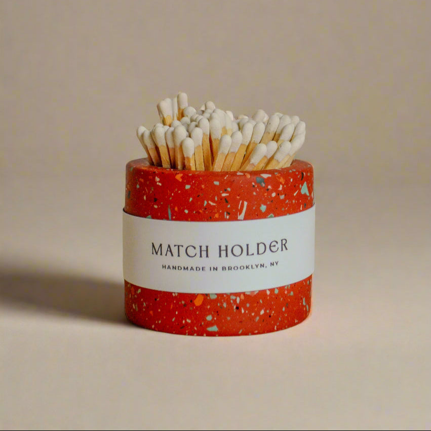 Eco-friendly and functional, this Zero Waste Match Holder is handcrafted using leftover concrete from other projects—giving new life to discarded materials. Each piece is one-of-a-kind, with natural variations in texture and tone that make it uniquely yours. A sustainable addition to your coffee table or entryway, it’s perfect for holding strike-anywhere matches with a built-in striker pad on the bottom. Stylish, minimal, and made with the planet in mind.