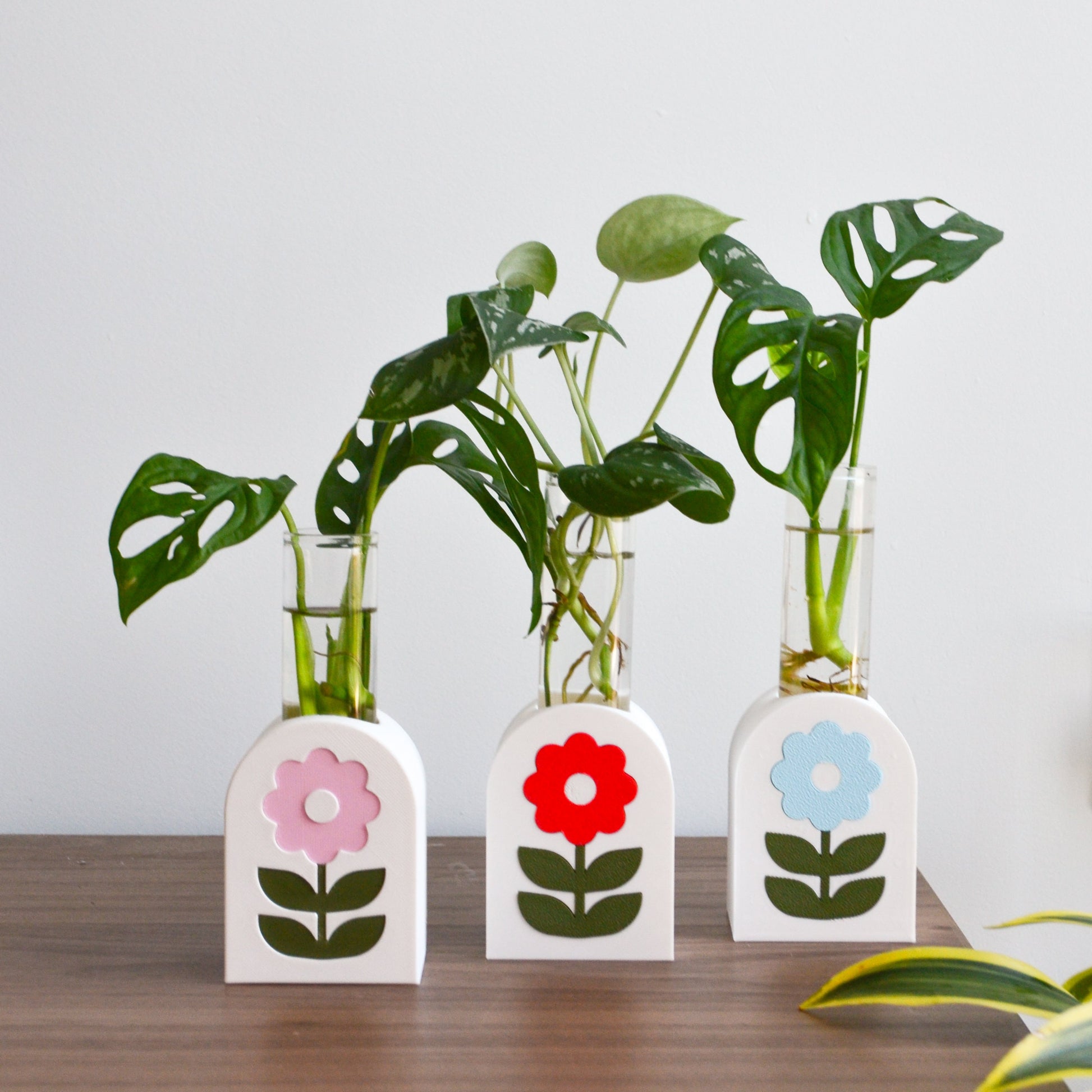 This unique flower-shaped propagation vase is 3D printed in-house using eco-friendly PLA, a plant-based biodegradable material. Perfect for rooting cuttings or displaying single stems, its playful petal design adds a delicate touch to any windowsill, shelf, or plant lover’s nook. Lightweight, modern, and thoughtfully made, each piece is a stylish and sustainable way to grow your green collection.