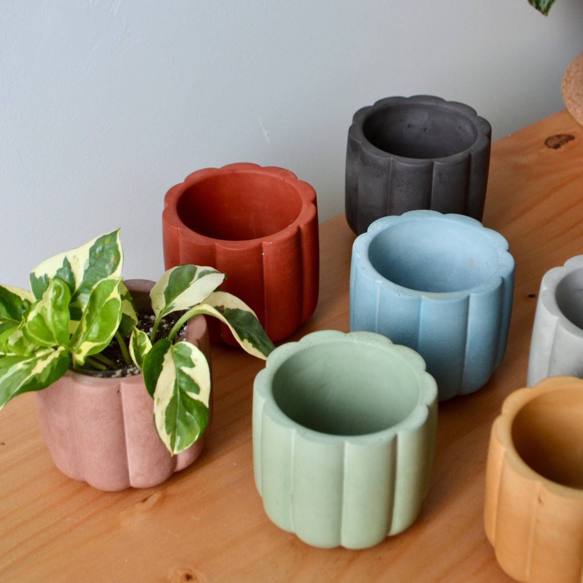 Add a touch of modern charm to your green space with our fluted Concrete Planter. Handmade with durable concrete, this planter is perfect for showcasing your favorite plants in style. Upgrade your home decor with this unique and sturdy piece.