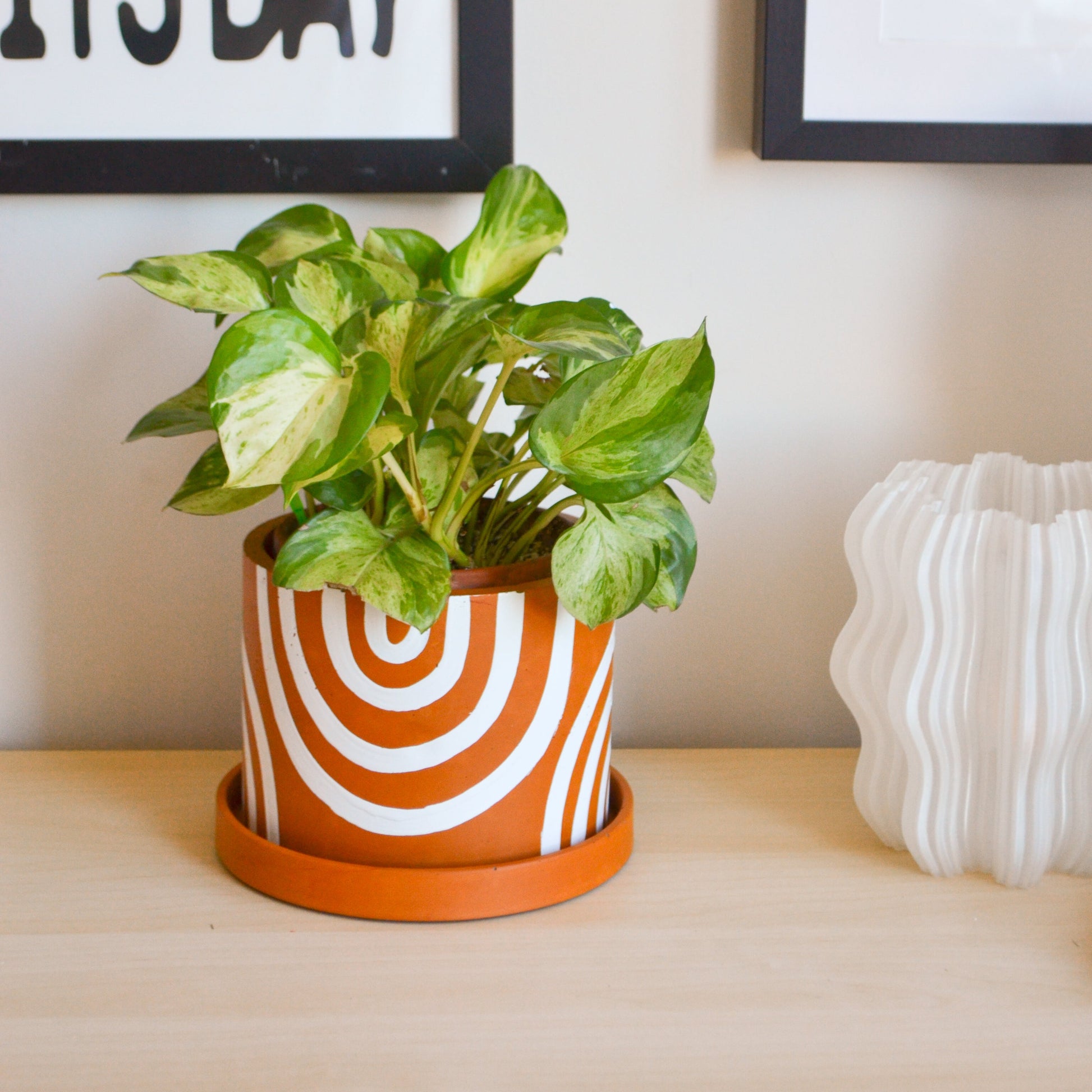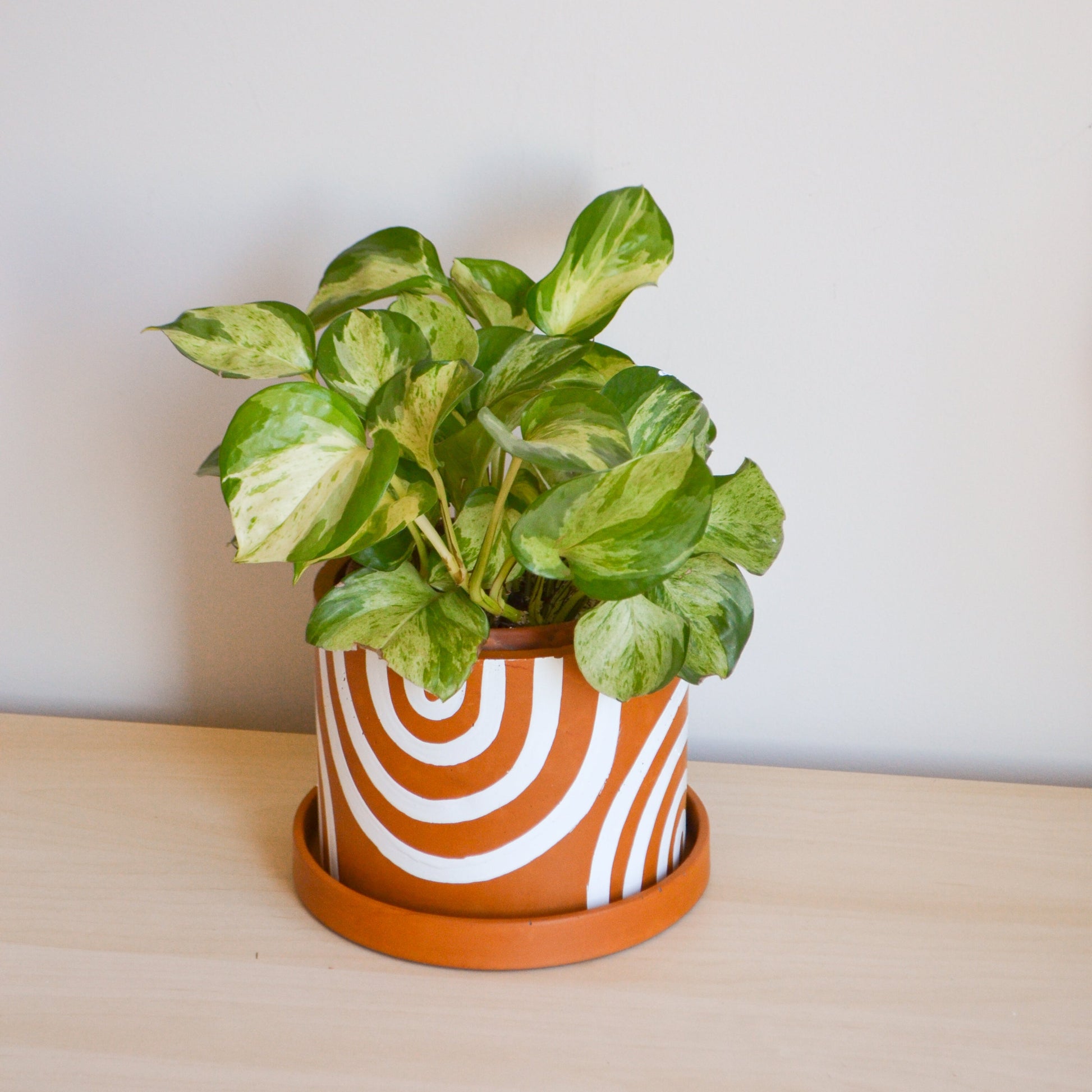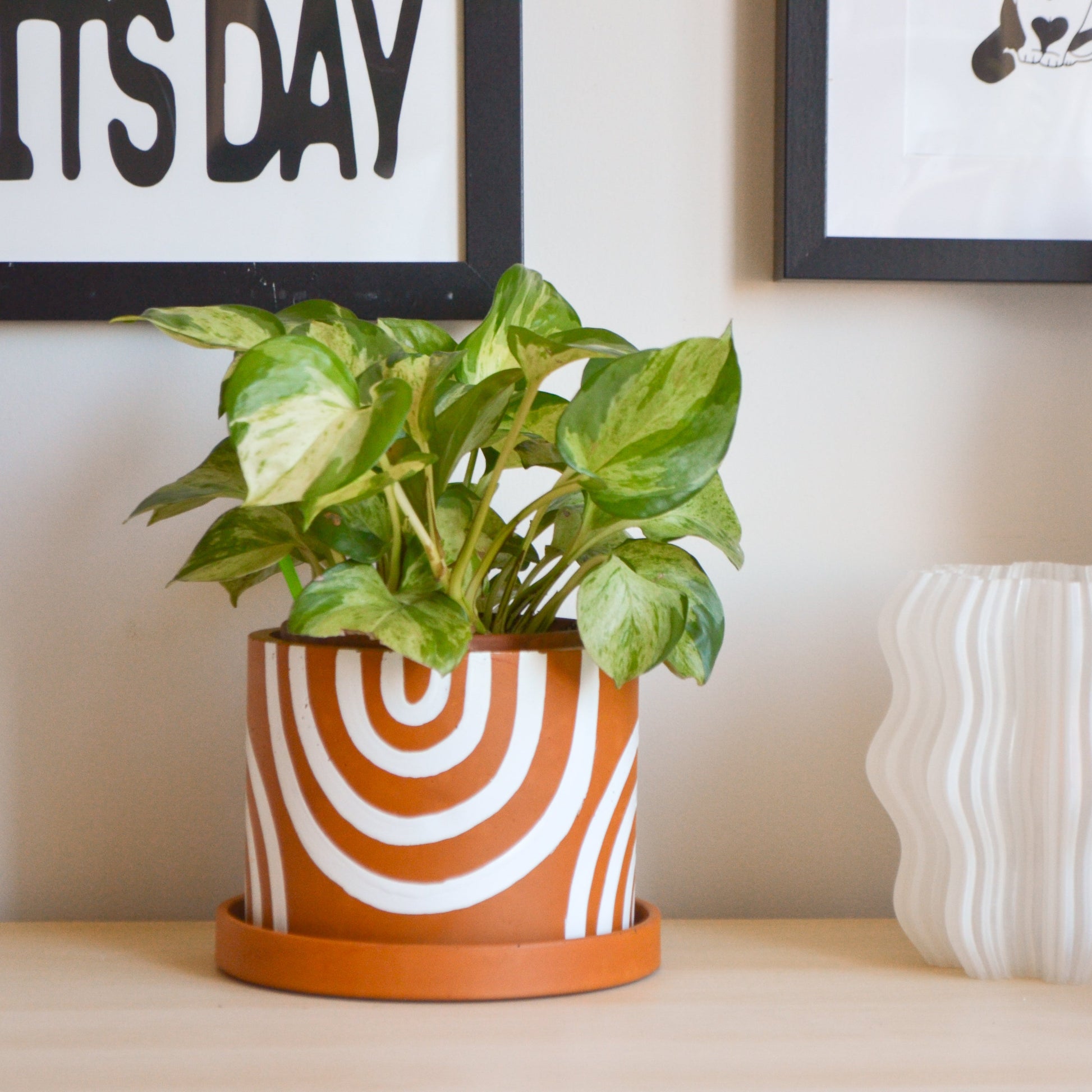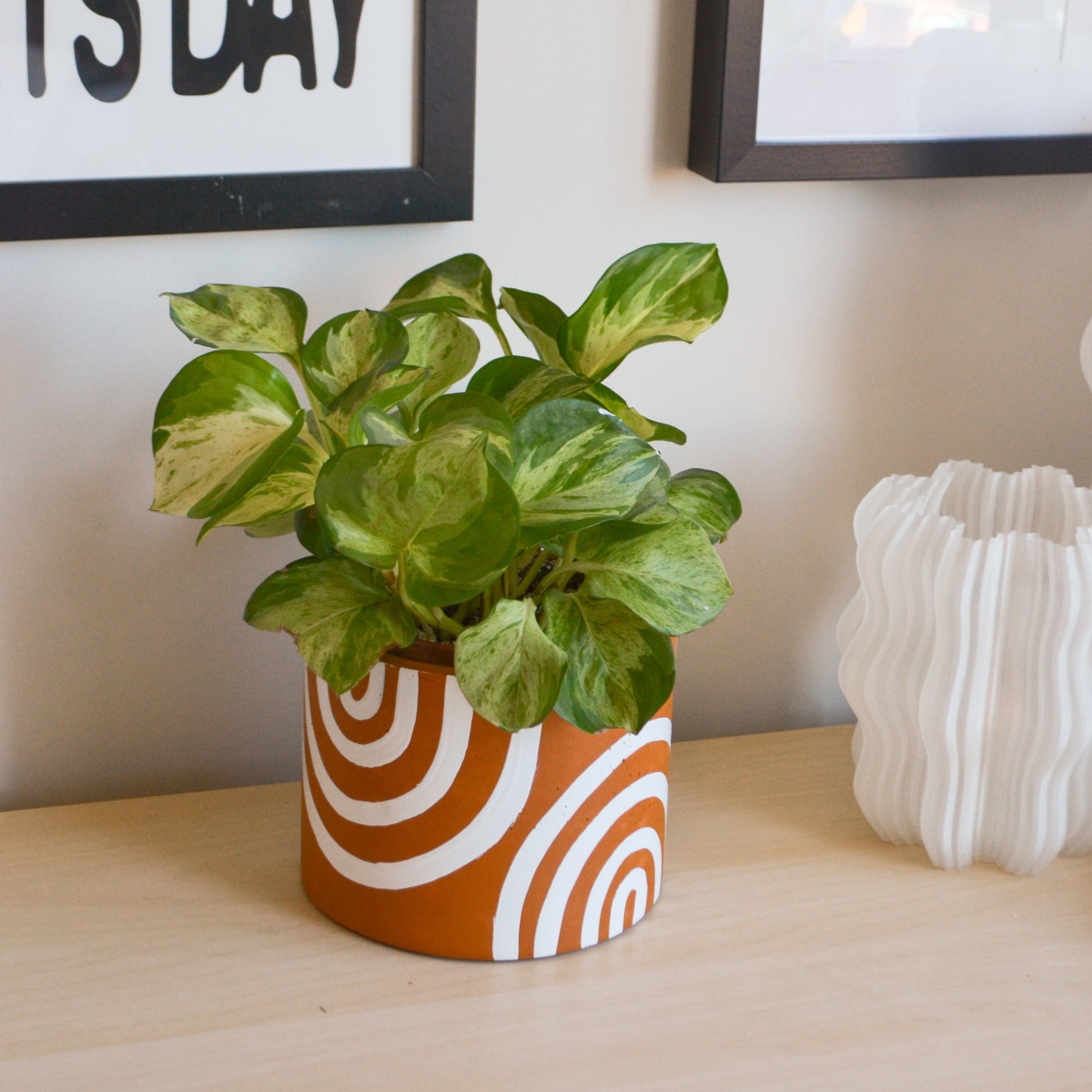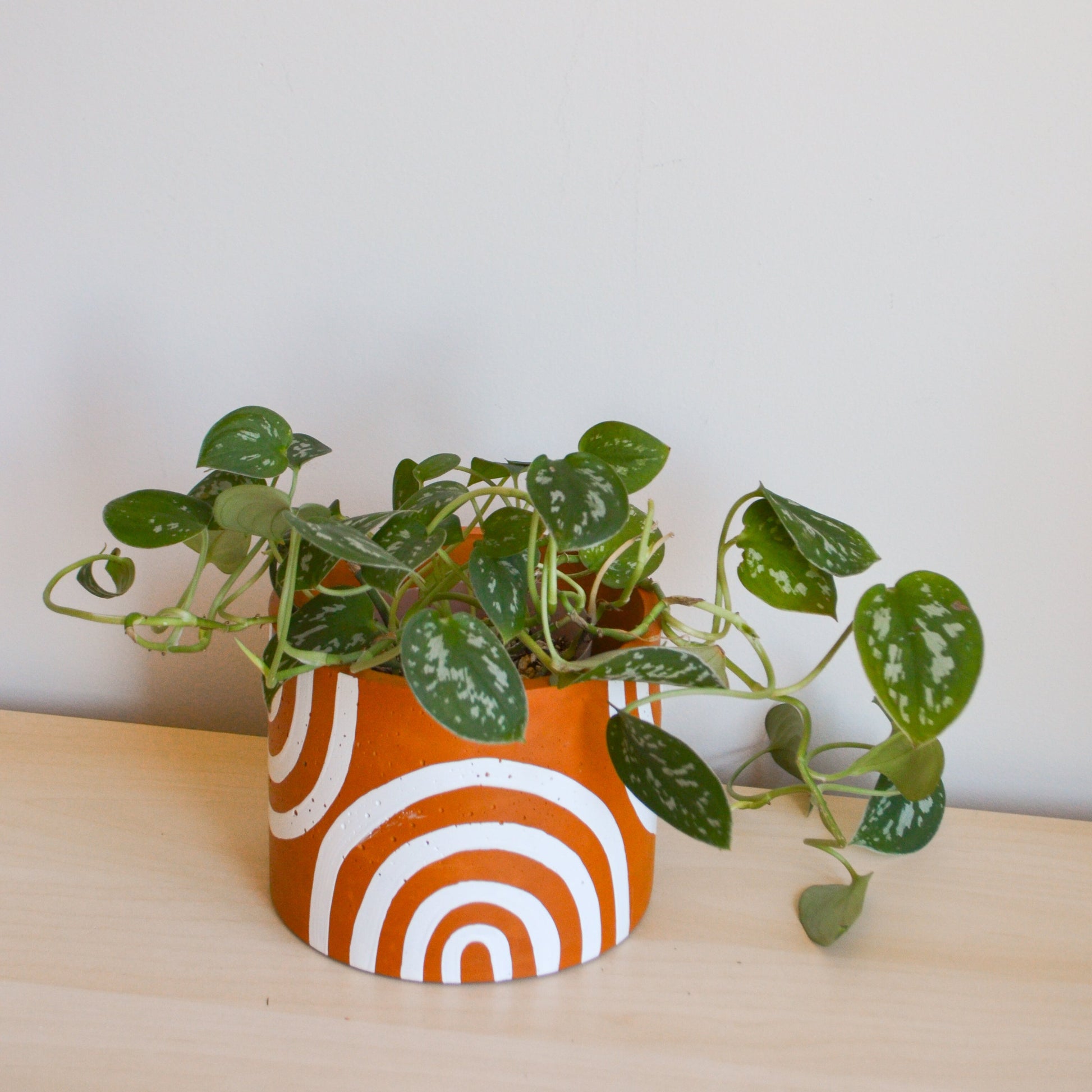 This cheerful concrete planter brings a pop of color and charm to any space. Perfect for small plants, succulents, or as a whimsical accent on your windowsill, desk, or shelf. Each piece is lovingly made and painted by hand, making every planter truly one of a kind. A playful and modern addition to your home or a thoughtful gift for plant lovers and rainbow fans alike.