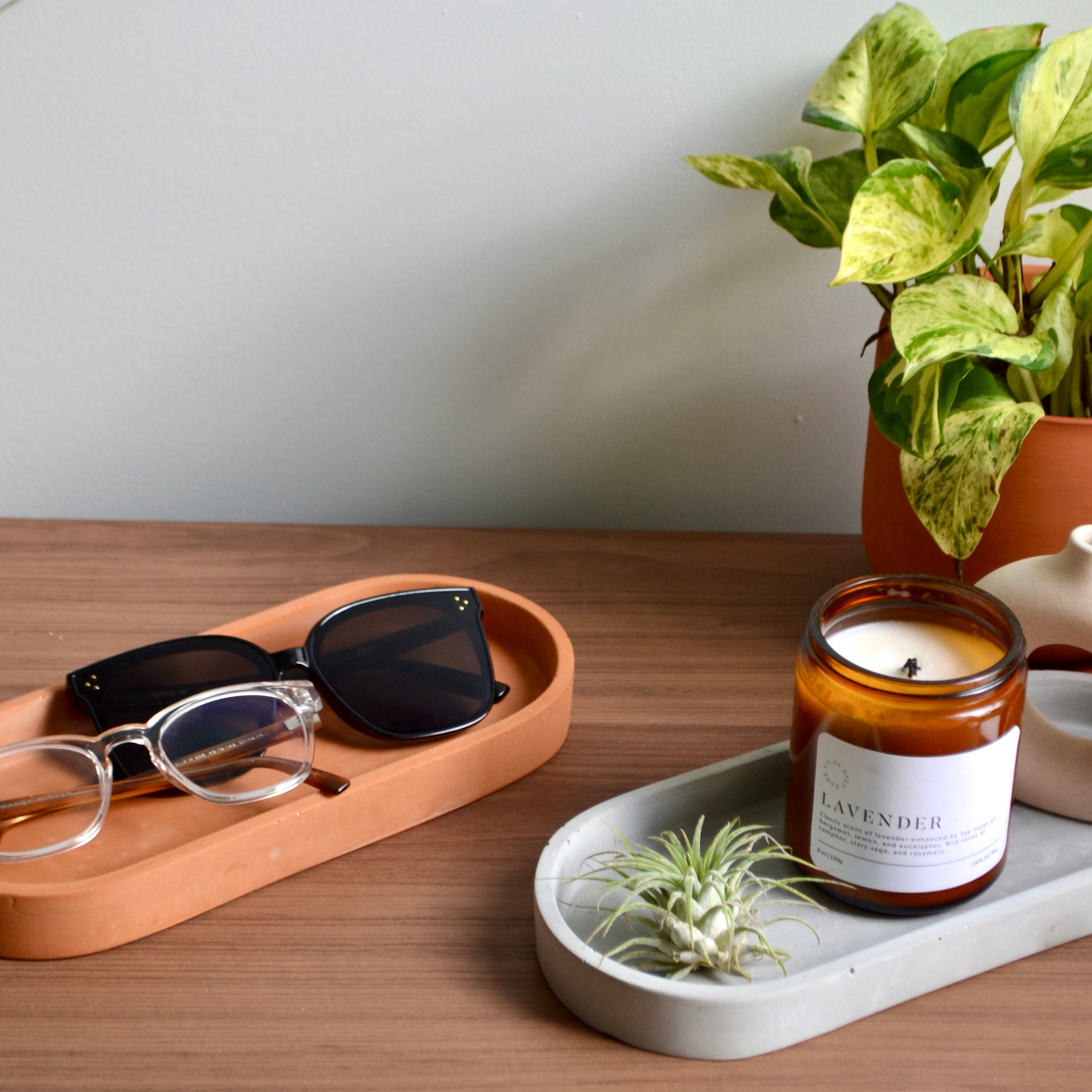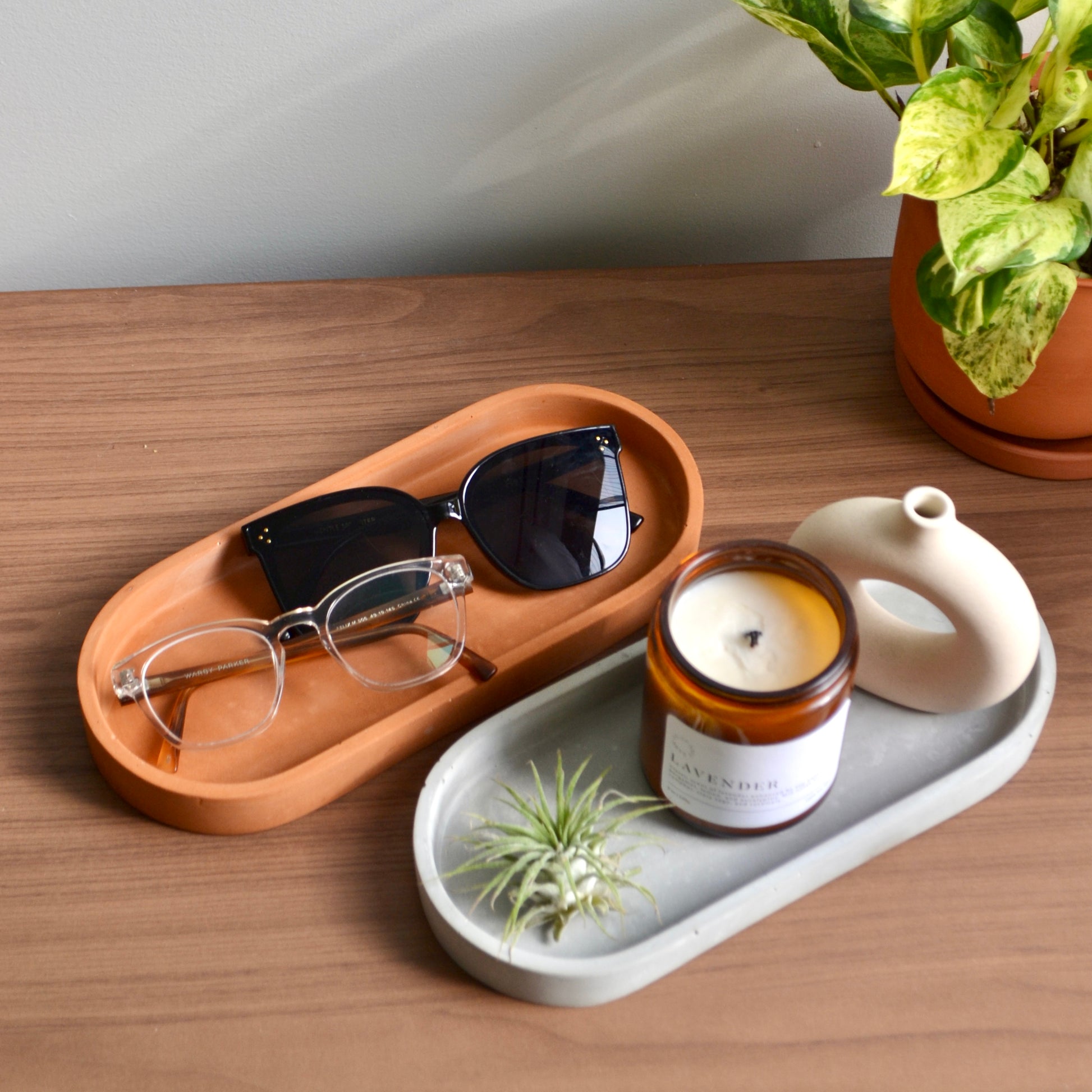 Sleek and minimal, this long oblong concrete tray is perfect for organizing your kitchen essentials, bathroom toiletries, perfumes, or coffee table decor. A modern touch for any space.