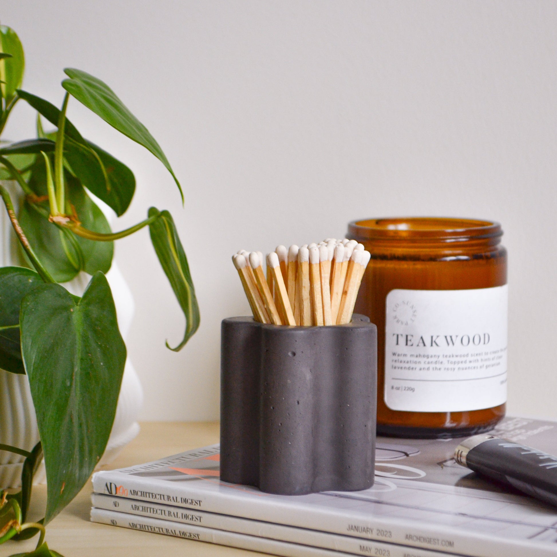 Keep your matches stylishly stored and ready to strike with our Daisy Match Holder. Designed with elegant, wave-like edges, this piece adds a touch of charm to any coffee table, bathroom, or candle display. 4x Match striker stickers + 25+ 3" Safety Matches included.