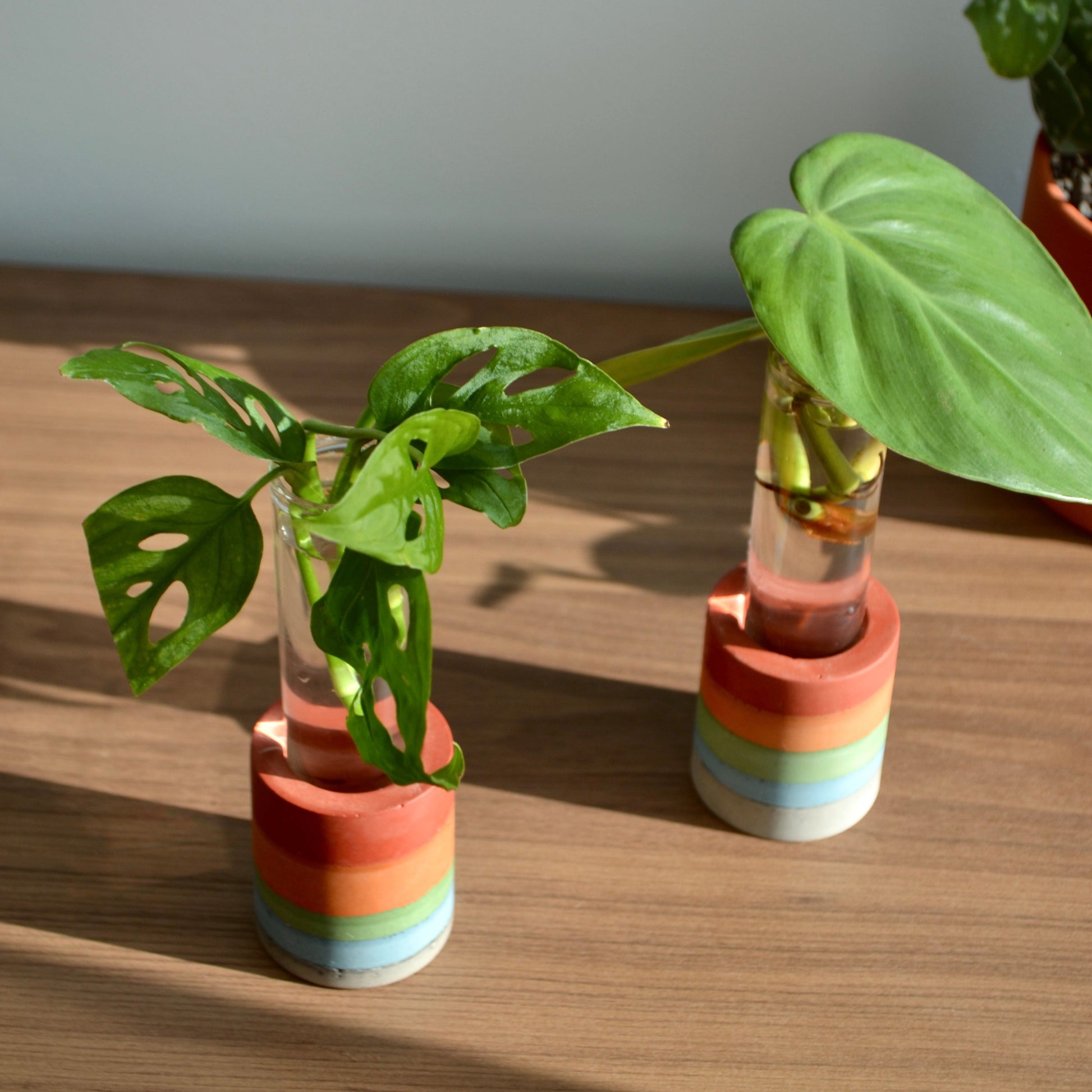 Brighten up your windowsill with this layered rainbow propagation vase! Designed for cuttings and hydroponics, this vibrant piece adds a playful pop of color while showcasing your plant babies. A cheerful, handmade touch for any plant lover’s home.