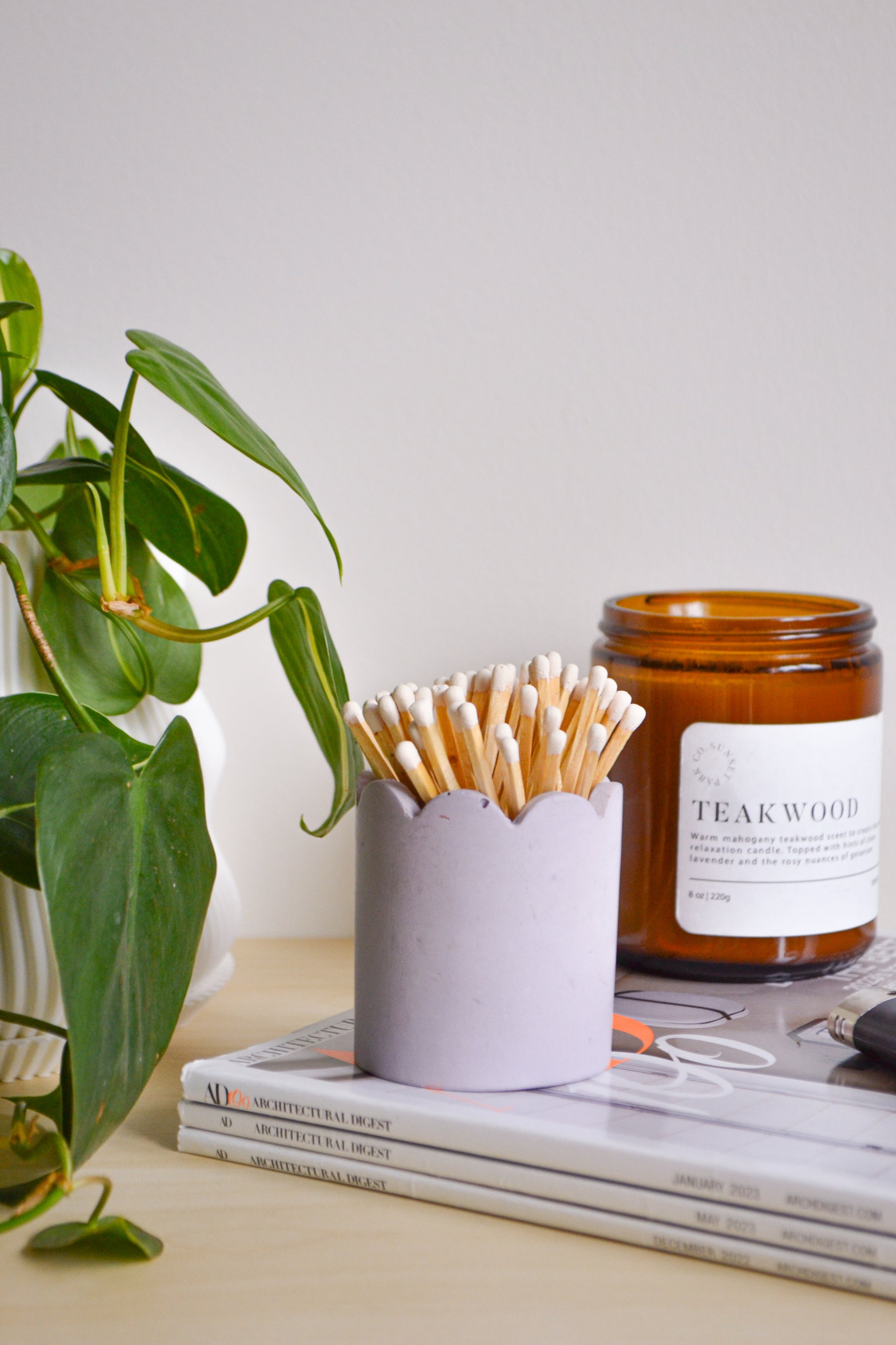 Add a touch of charm to your space with our Scallop Match Holder—hand-poured in concrete and designed with a soft, wavy silhouette. This petite holder doubles as decor and function, with a built-in strike pad on the bottom and just enough room to hold your favorite strike-anywhere matches. Perfect for lighting candles, incense, or simply styling a shelf. Thoughtfully handmade for lovers of detail and cozy rituals.